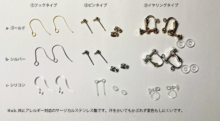 ・金具:サージカルステンレス(アレルギー対応)/シリコン